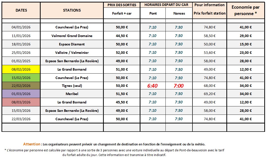 Règlement : dans le car à l'aller (pensez à prendre ce qu'il faut dans le car) : carte bancaire, chèque, espèces, chèques vacances.